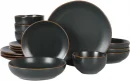 Complete Your Table with a Versatile 16-Piece Dinnerware Set This comprehensive dinnerware collection includes everything you need to serve meals in style. The set features four 10.75-inch dinner plates, four 7.75-inch dessert plates, four 8.5-inch dinner bowls, and four 5.5-inch cereal bowls – providing ample pieces for family dinners or entertaining guests. Premium Quality Construction for Lasting Durability Crafted from high-quality stoneware fired at extreme temperatures, this dinnerware set offers exceptional strength and resilience. The non-porous surface resists chipping, cracking, and staining, ensuring your investment withstands daily use while maintaining its elegant appearance year after year. Sophisticated Matte Finish Design The modern matte glaze creates a beautiful solid black finish that complements any table setting. Each piece features an earthy brown accent along the rim, adding subtle sophistication to your dining experience without overwhelming your meal presentation. Versatile Serving Options for Every Occasion The included dinner bowls combine the spacious base of a plate with the curved sides of a bowl, creating the perfect hybrid dish for everything from full balanced meals to hearty stews and soups. Use them for breakfast cereals, pasta dishes, salads, or desserts – their versatility makes them essential kitchen companions. Practical Features for Modern Living: • Dishwasher safe for easy cleaning and maintenance • Microwave safe for convenient reheating of leftovers • Oven safe up to recommended temperatures (check manufacturer guidelines) • Stackable design saves valuable cabinet space when not in use • Lead-free and cadmium-free materials ensure food safety compliance • Suitable for everyday family meals or special occasion entertaining • Coordinates beautifully with various table linens and decor styles The complete set provides excellent value compared to purchasing individual pieces separately. Whether you’re establishing your first home kitchen or upgrading your current dinnerware collection, these durable ceramic pieces offer both functionality and timeless style that transitions seamlessly between casual weeknight dinners and formal gatherings.