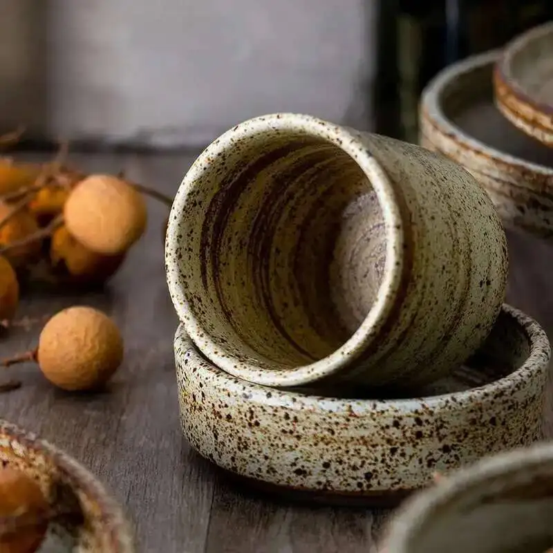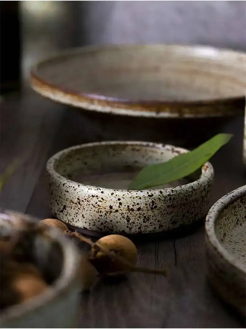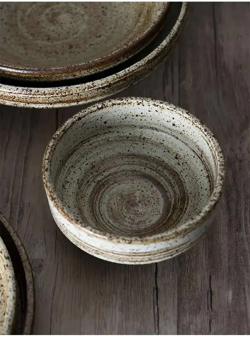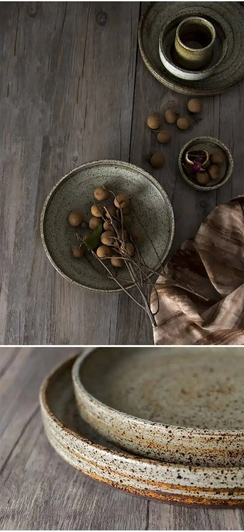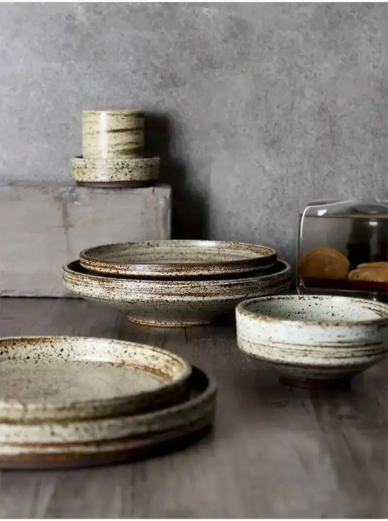 Retro Handmade Stoneware Rice Soup Bowl Tea Cup Round Steak Salad Dinner Plate Dishes Home Dining Dish Japanese Tableware Set